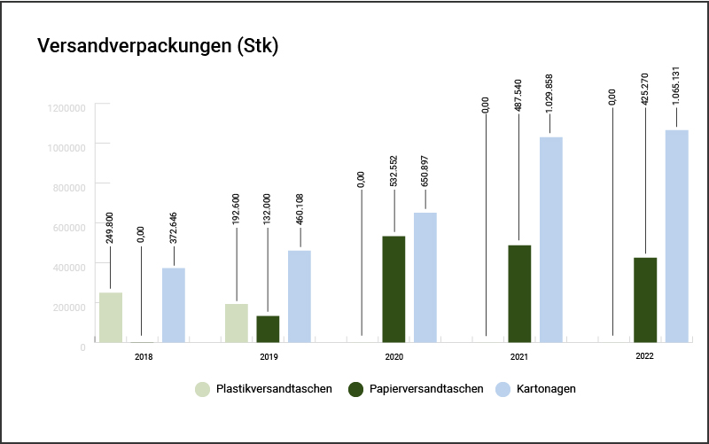 Als handelsonderneming zijn onze verbruiksartikelen voornamelijk gericht op het verzenden van onze artikelen in de winkel. Dit zijn kartonnen dozen en verzendzakken als buitenverpakking voor verzending, evenals printerpapier voor verzenddocumenten. In de loop van 2019 zijn we overgestapt van plastic naar papieren verzendzakken. Sinds juni 2022 worden er geen gedrukte facturen meer bij de pakketten gevoegd. Sinds medio 2022 is het vulmateriaal gemaakt van gerecycled oud papier. Het gebruik van verzendmaterialen neemt toe met de stijgende omzet - zoals voor ons in 2020 & 2021 steeds meer het geval zal zijn.